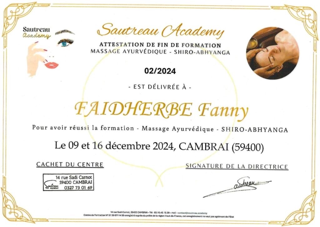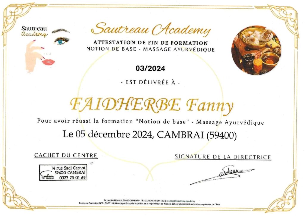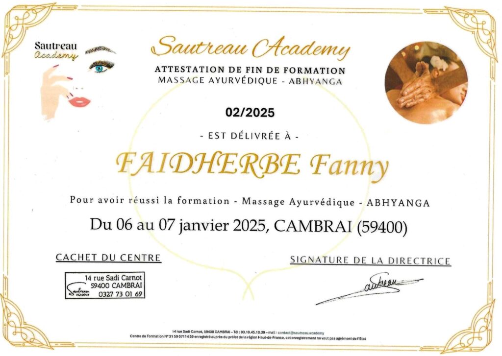 Formée par Davy Paniez au massage Ayurvédique Abhyanga.